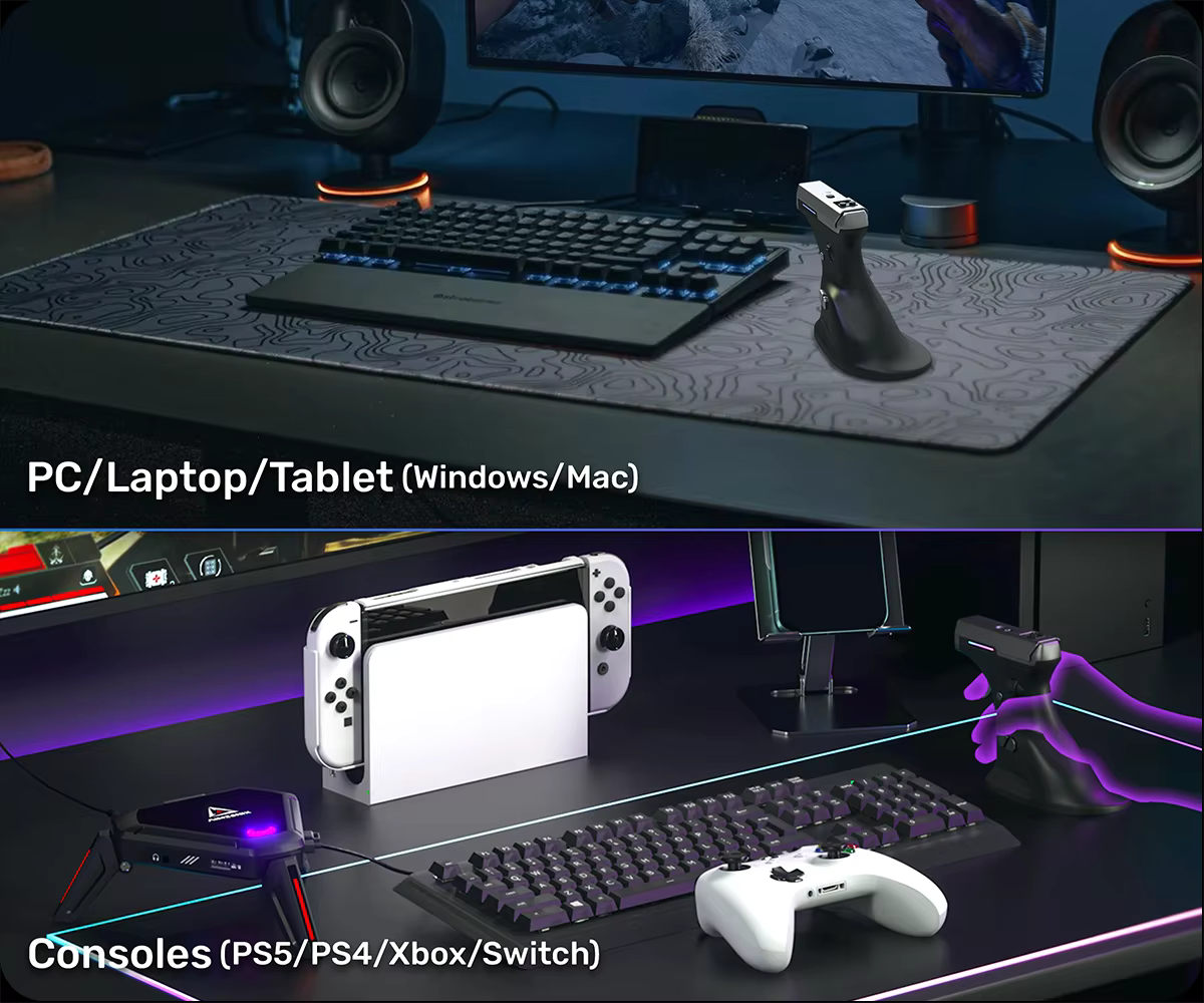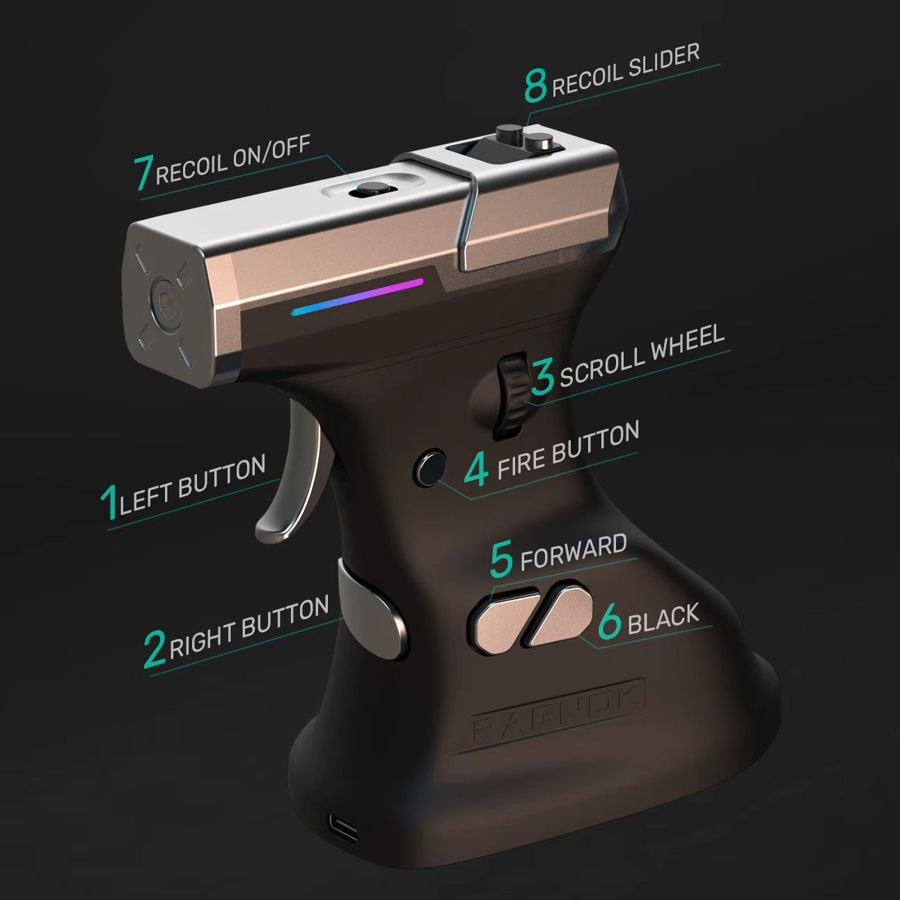 Experience FPS gaming like never before with the ErgoStrike7 RECOIL MASTER—a revolutionary gun-shaped gaming mouse featuring real recoil feedback that kicks back with every shot. The built-in linear motor delivers authentic firearm simulation with adjustable intensity levels, while the ergonomic vertical pistol-grip design reduces wrist strain during extended play. Featuring up to 26,000 DPI precision, intuitive trigger-based controls, and 5 fully programmable buttons, this mouse is optimized for competitive shooters across all platforms (PC, PS5, PS4, Xbox, Switch). Customize your experience with dedicated Ragnok software to adjust DPI, recoil strength, RGB lighting, and button mapping. Compatible with CS:GO, Valorant, Call of Duty, PUBG, Apex Legends, and all your favorite games—plug and play, no drivers required.