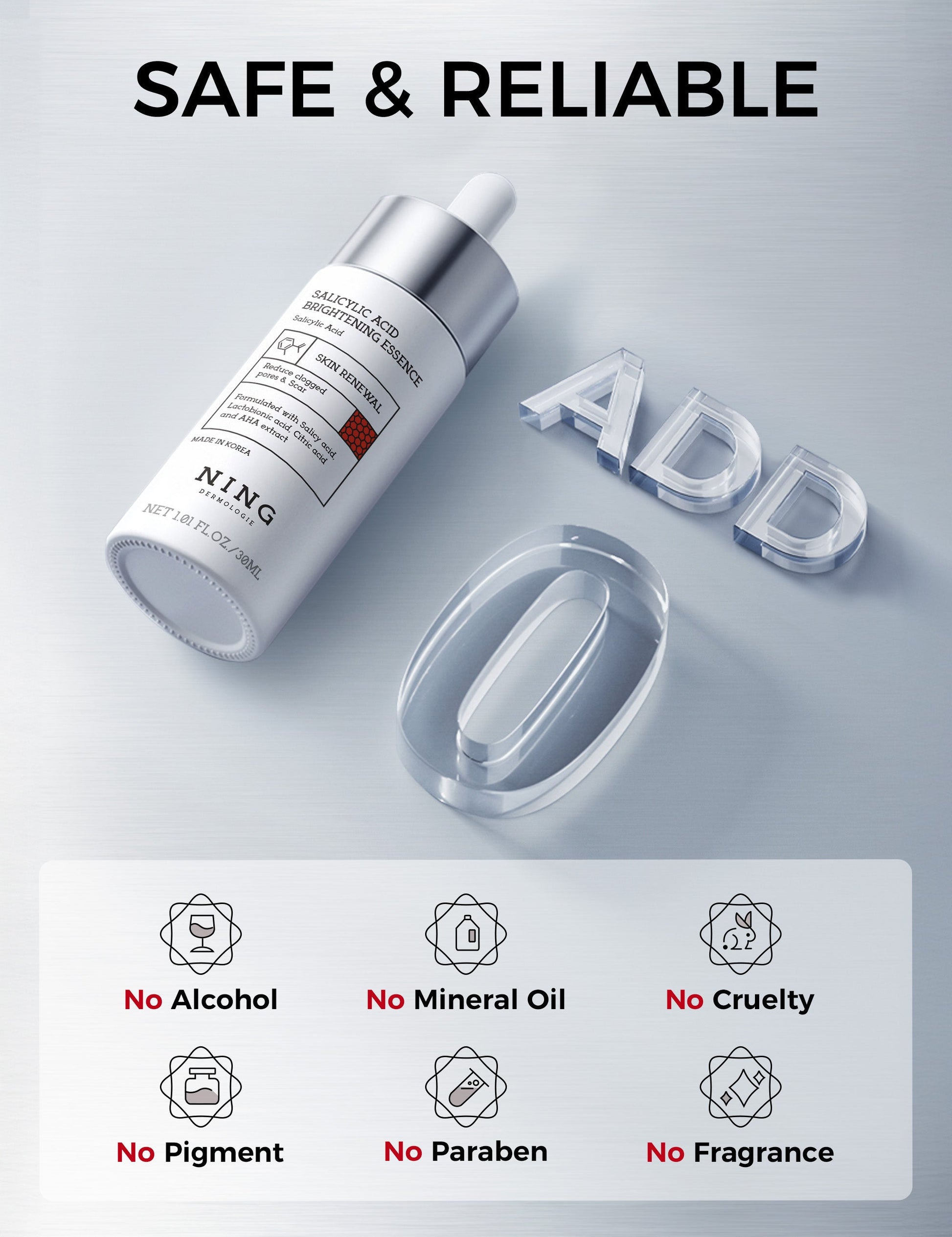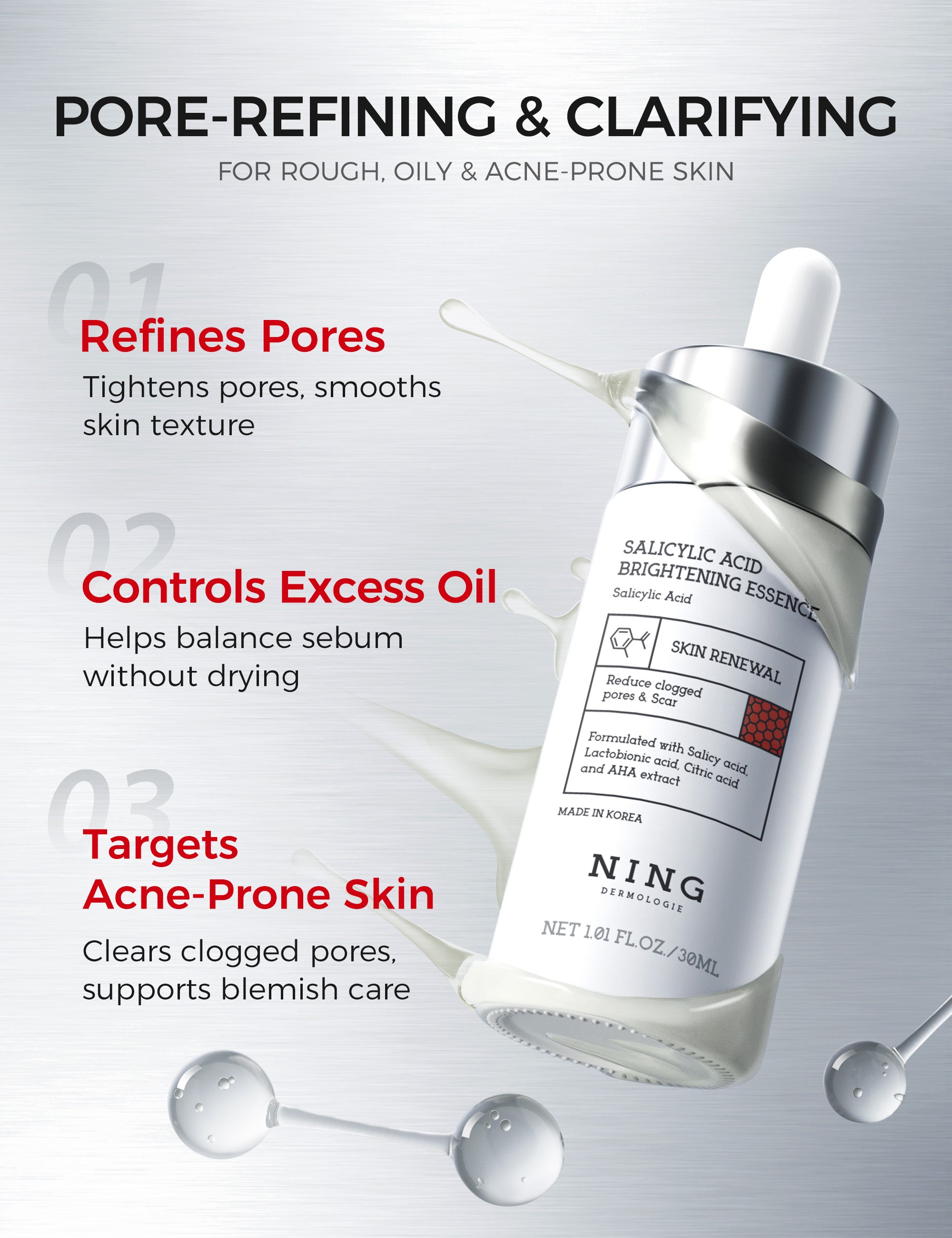 NING Acne Facial Serum,Salicylic acid and hyaluronic acid| 30ml,Gentle Skin Care for Acne Prone Sensitive Skin Dark Spot Remover Moisturizing Treatment Essence Nicotinamide Riboside